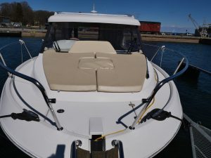 I Beneteau 8,80 Antares har det Franska stor varvet lyckas få in det mesta för bekväma och långa stunder till sjöss. Allt som man kan önska sig finns ombord och driften framåt står en 250 HK Suzuki med endast 537 timmar. En toppfart på ca 27 knop och marchfart på ca 16-17 knop i fin ekonomisk planing. 2 dubbel kojer i ruffen , stängbar toalett med el-toa och dusch.