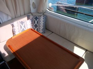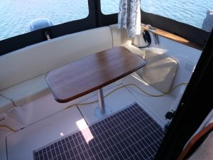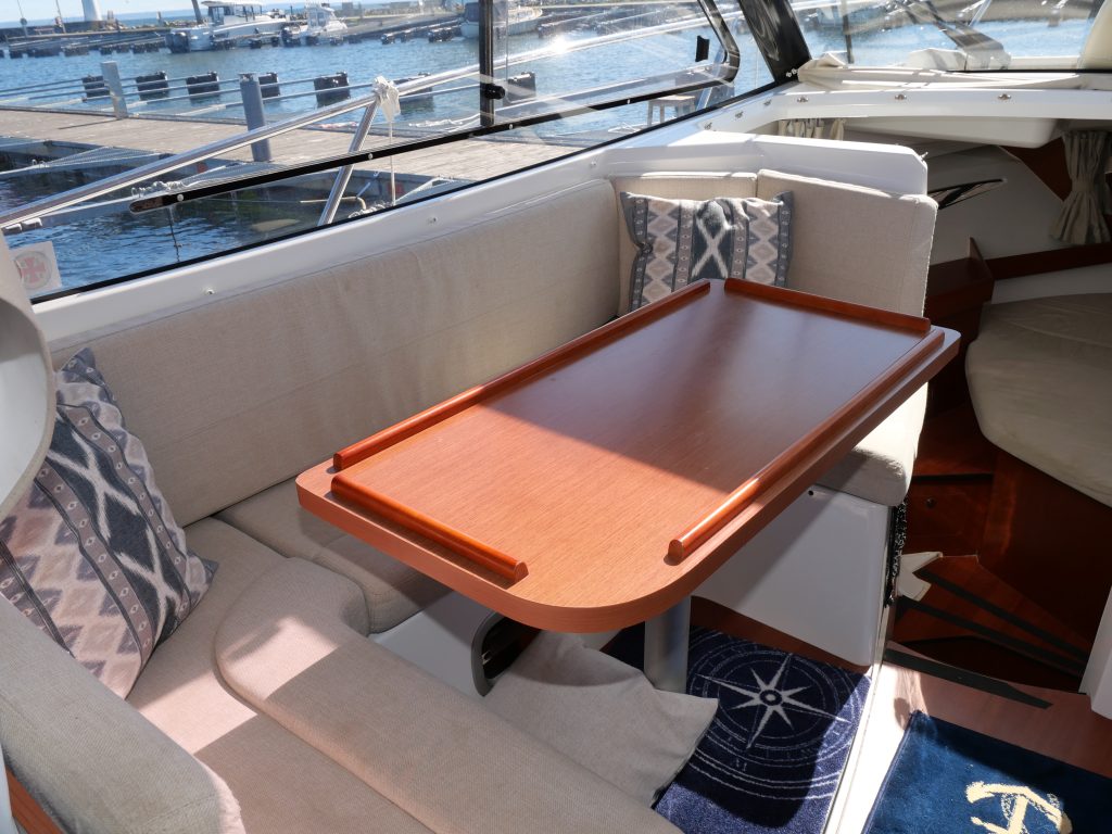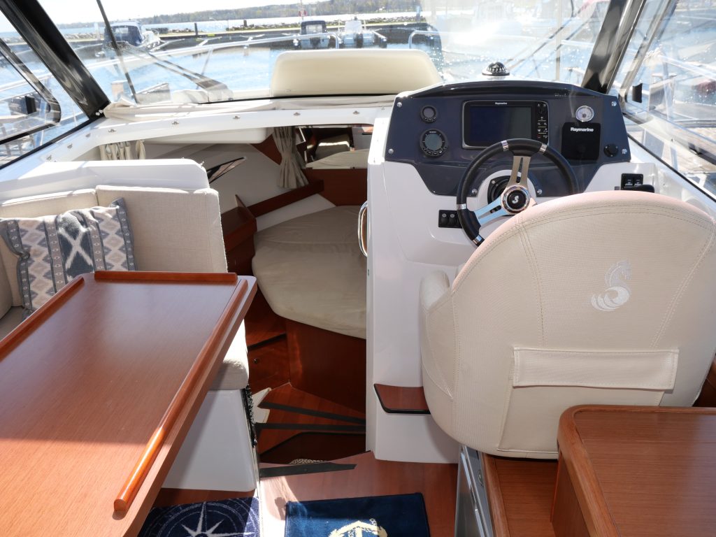 I salong panorama utsikt 360grader där bordet kan sänkas ner och få ytterligare en bädd. På styrbordsidan styrplats och pentry med kylskåp. När man öppnar skjutdörrarna mot akterdäck får man en fin altan med akter soffa som är inklädd med ett nytt kapell . Dubbla ankarspel, bogpropeller, värmare, kyl, plotter . autopilot och vad mer kan man önska sig.