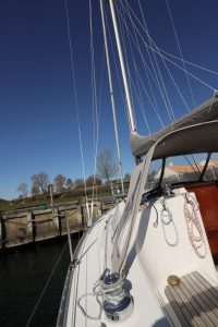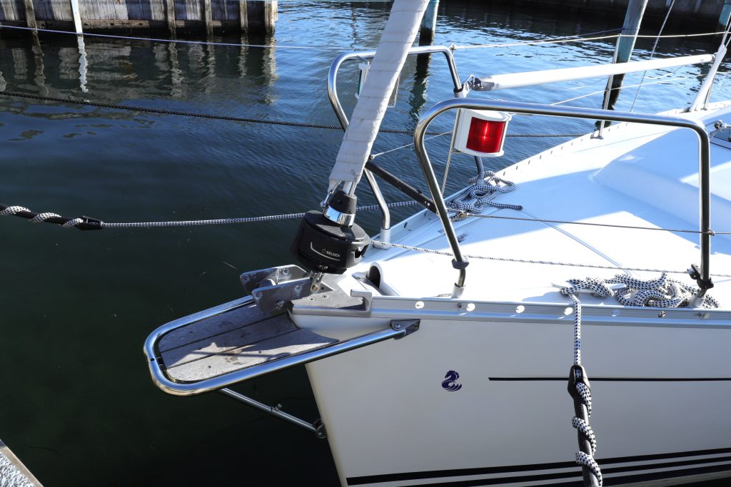 Båten är lättseglad med alla linor dragna till sittbrunnen. Förseglet är på en Furlex, och storseglet är i Lazzy Jack.