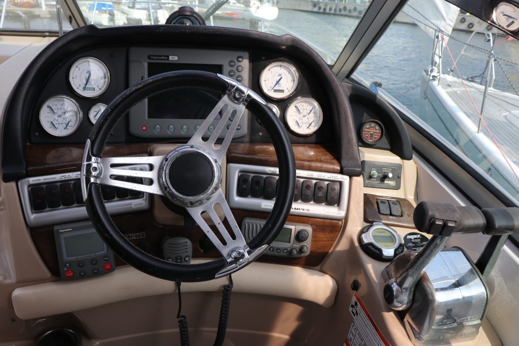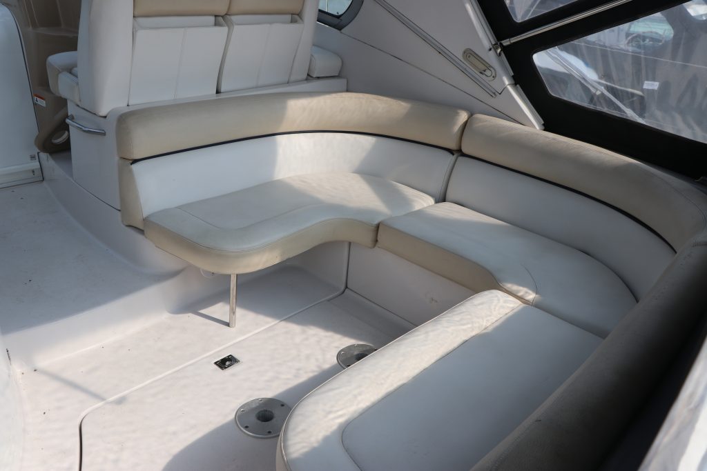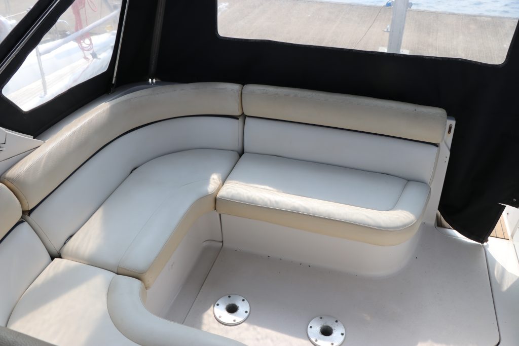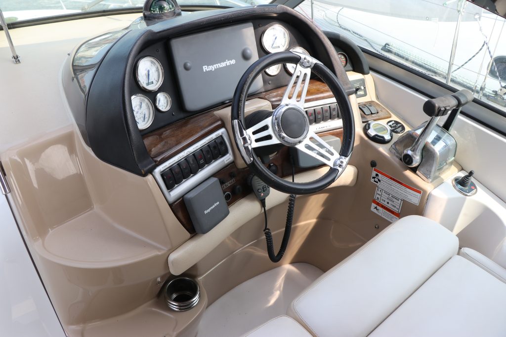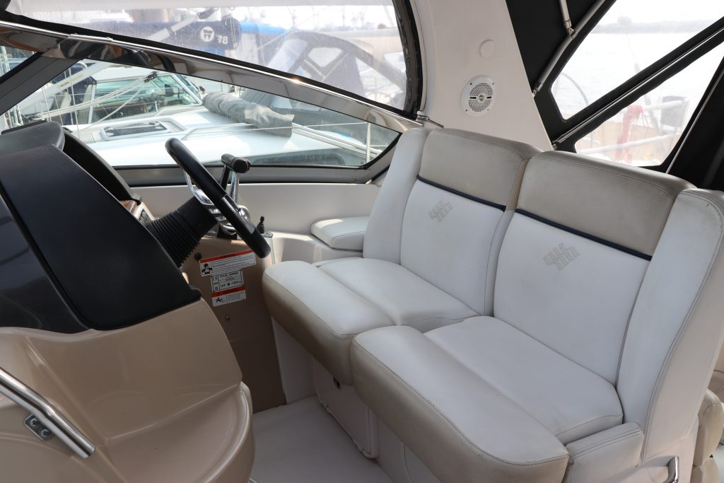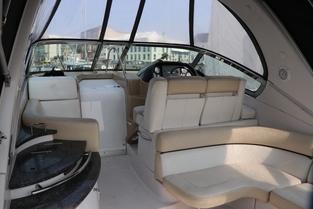 Med dubbla 270-hk Volvo Penta 5.7 Gi DuoProp sterndrives med låga motortimmar (420h) hoppade 318 Vista snabbt ombord och ger massor av mellanregister för att öka ytterligare. De låga ljudnivåerna i denna båt är en av dess starka sidor med en mycket bra akustisk isolering. Läns- och motorområdena är servicemässigt lättillgängliga.