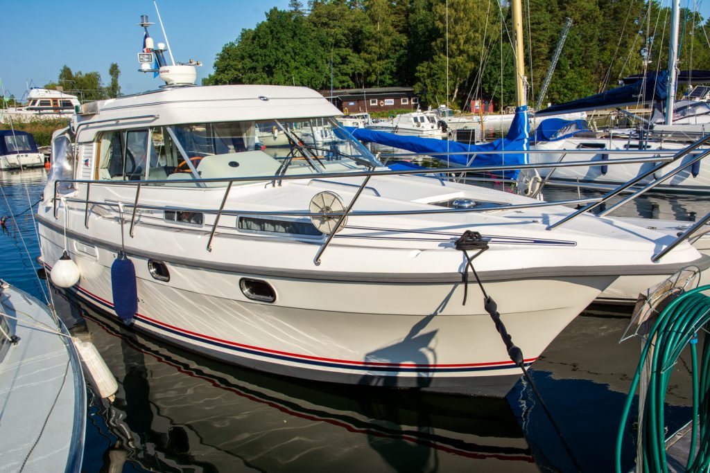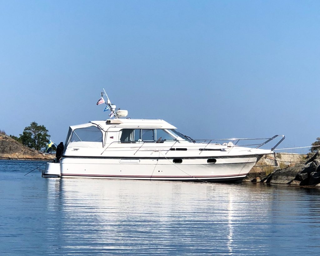 Nimbus 320 Coupé, 2006. Hög kvalité, stabil och ekonomisk gång i alla farter. Båten som uppskattas högt så väl av familjen som paret med vänner ombord.