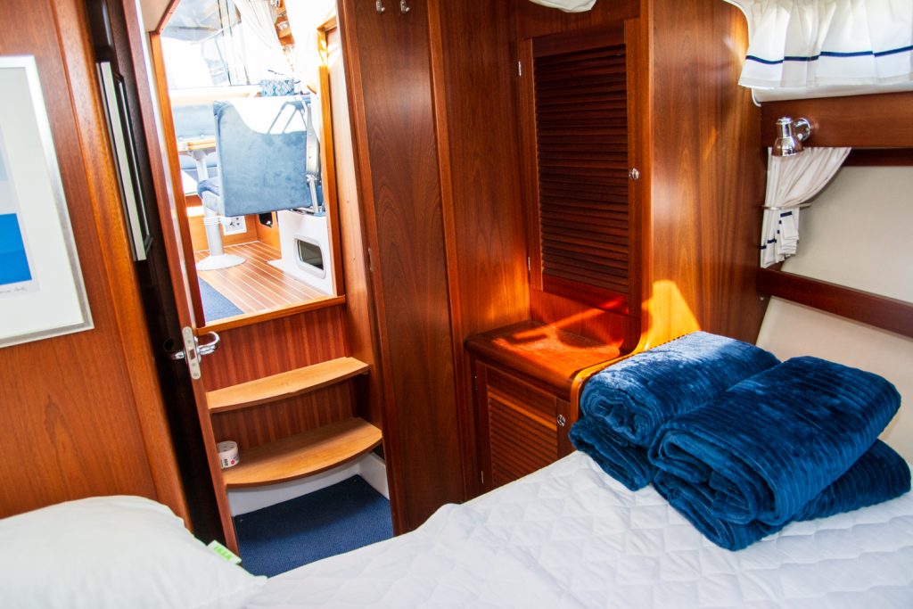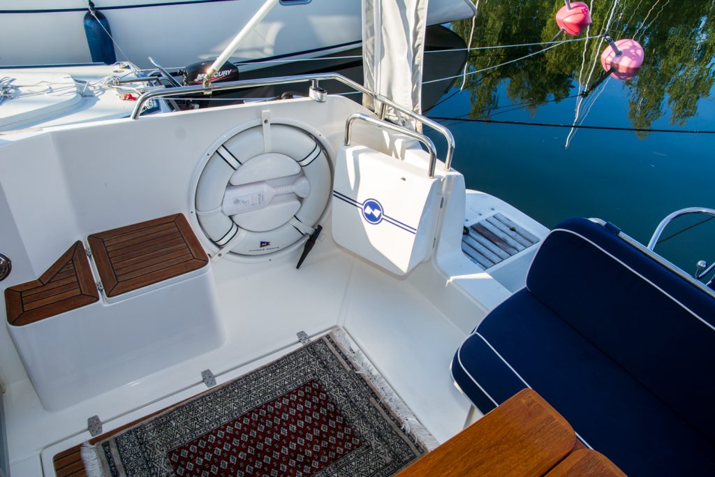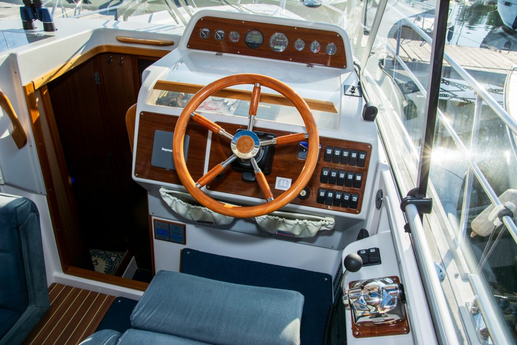 Detta exemplar är välhållet och rikligt utrustat med allt önskvärt såsom ankarspel i akter, bog -och akterpropeller, radar, värmare med mera.