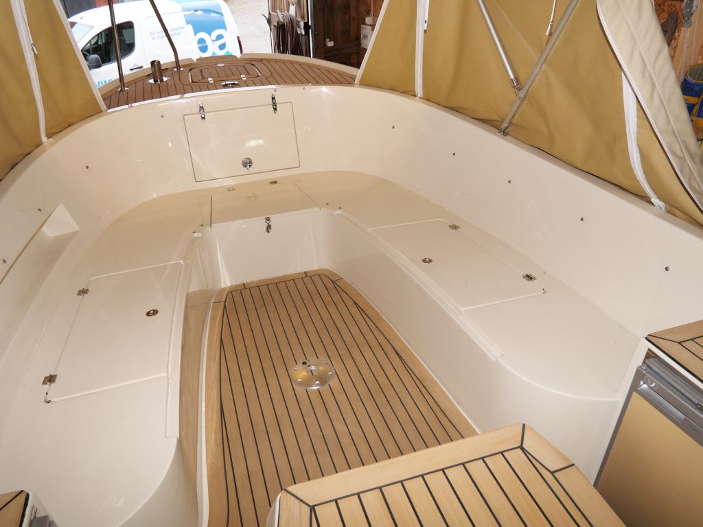 Den perfekta skärgårds båten för transport, härliga dagar på sjön och plats för 8 personer. Med en kraftig motor och en utrustning över det vanliga blir det bekvämt båt åkande oavsett väder. Med praktiska delbara kapell sitter man trygg oavsett väder och gör det möjligt också att bädda upp främre sitt bänkarna om man får lust att tillbringa natten ombord. I denna båt har man allt man önskar för härliga dagar på sjön. Med utrustning som bogpropeller, ankarspel akter och en stark motor blir det både enkelt och tryggt att hantera denna båt oavsett väder. Med kapell över hela sittbrunnen man fäller lätt, bad plattform akteröver och vinyl teak på alla gångytor blir denna båt en modern gentlemans cruiser. Se utrustningslista i PDF- fil .Mer bilder kommer